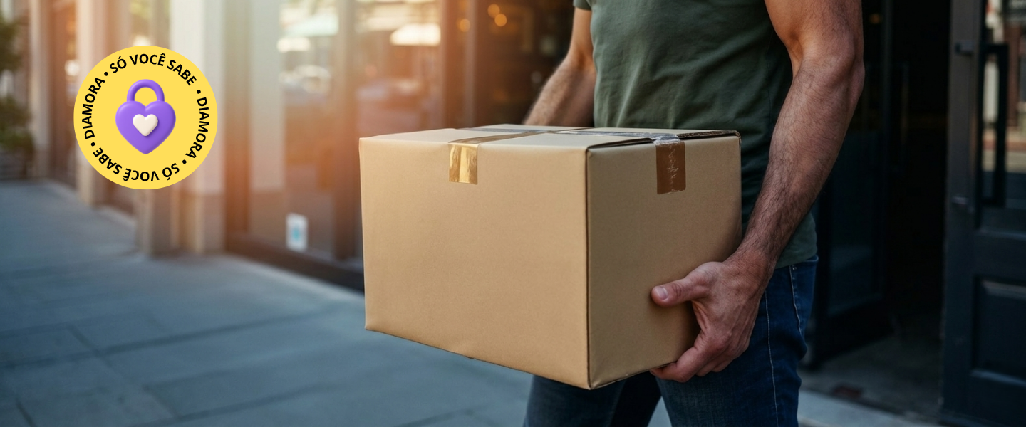 O remetente não será "Diamora". Utilizamos um nome pessoal ou abreviado para que ninguém, nem mesmo o estafeta, saiba a origem da encomenda.